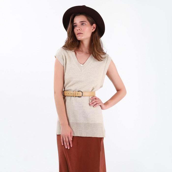 Ремень женский, ширина 3,5 см, винт, пряжка металл, цвет бежевый