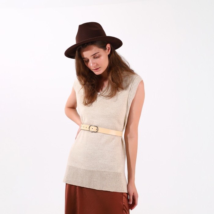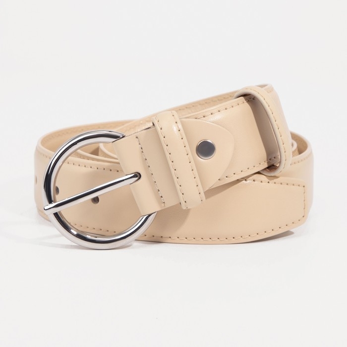 Ремень женский, ширина 3,5 см, винт, пряжка металл, цвет светло-бежевый