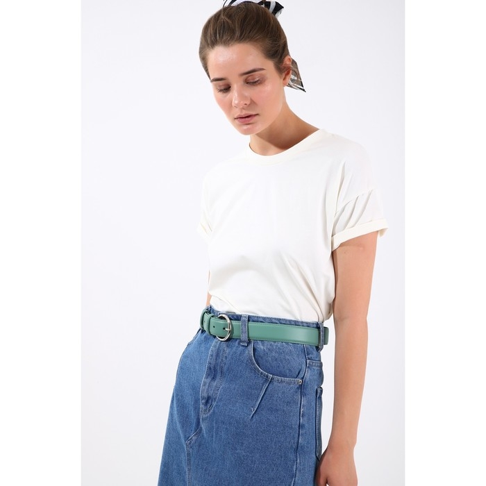 Ремень женский, ширина 3,5 см, винт, пряжка металл, цвет зелёный