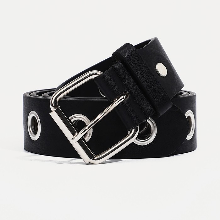 Ремень женский, ширина 3.5 см, винт, пряжка металл, люверсы, цвет чёрный