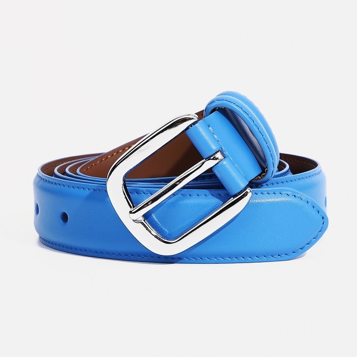 Ремень женский, ширина 3 см, винт, пряжка металл, цвет голубой