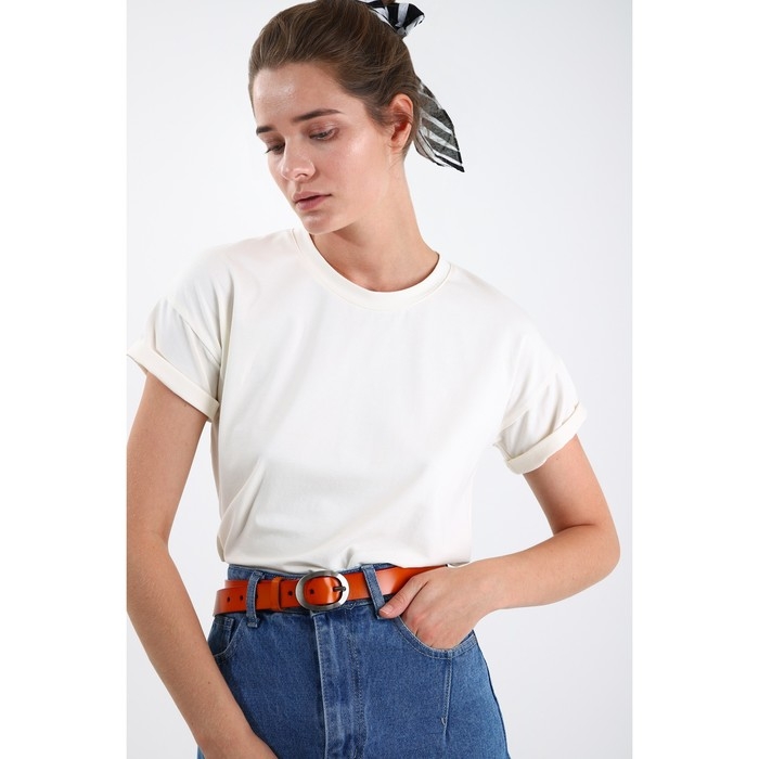 Ремень женский, ширина 3 см, винт, пряжка металл, цвет оранжевый