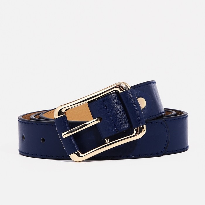 Ремень женский, ширина 3 см, винт, пряжка металл, цвет синий