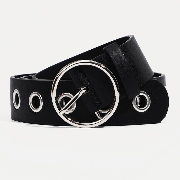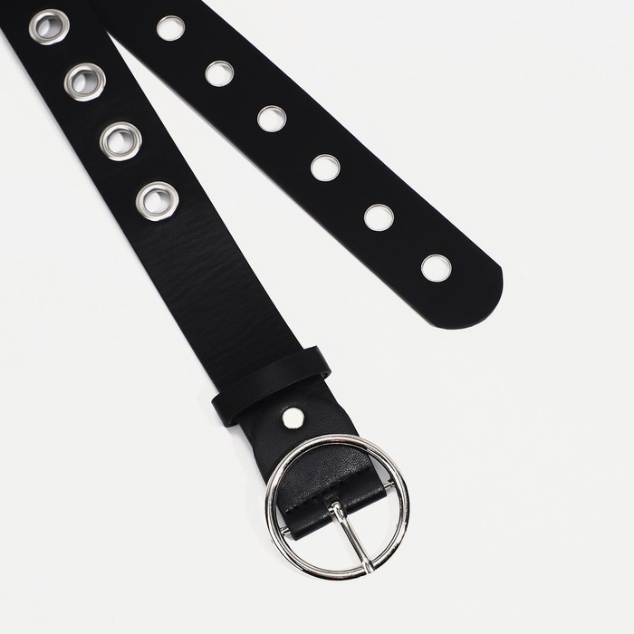 Ремень женский, ширина 4 см, винт, пряжка металл, люверсы, цвет чёрный