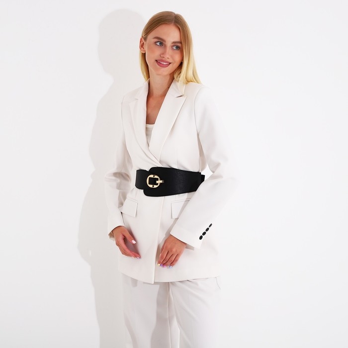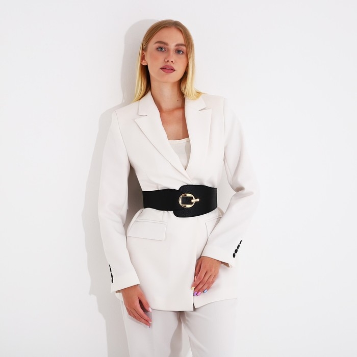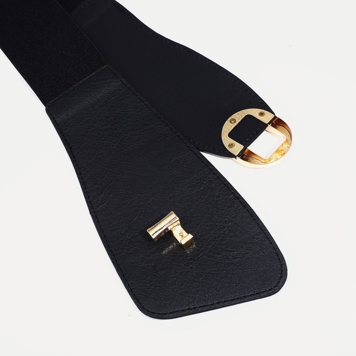 Ремень женский, ширина 6-10 см, на резинке, пряжка металл, цвет чёрный
