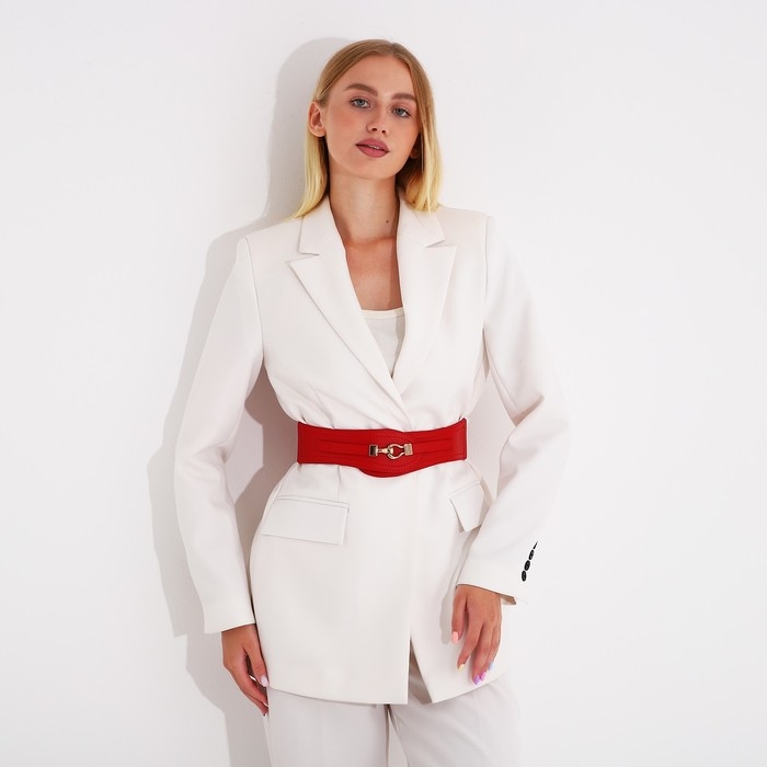 Ремень женский, ширина 6 см, на резинке, пряжка металл, цвет красный