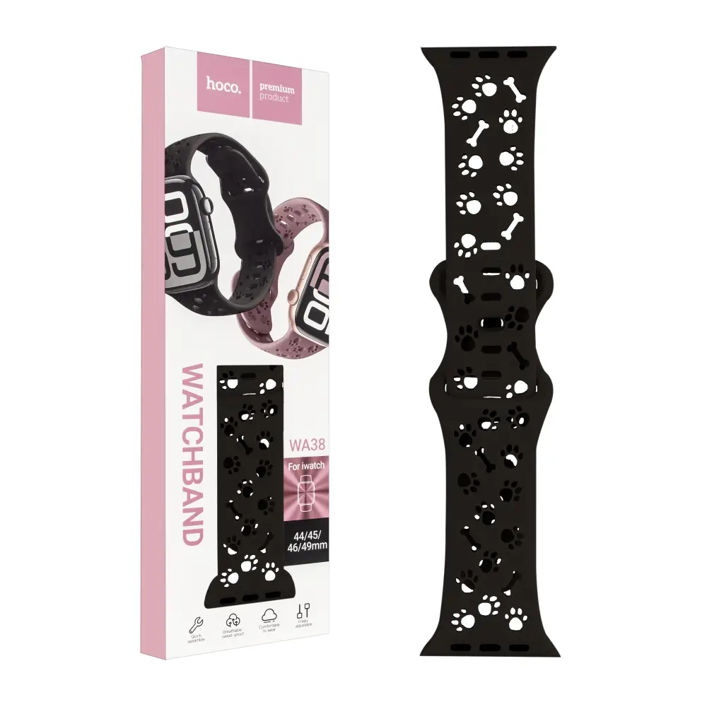 Ремешок для Apl watch 42/44/45mm WA38 Time series solid color silicone strap black HOCO