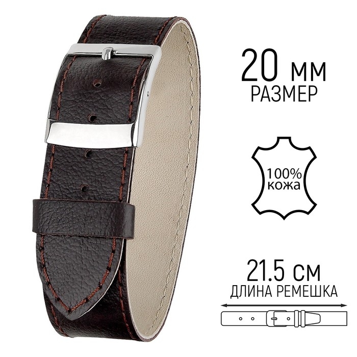 Ремешок для часов, мужской, 20 мм, натуральная кожа, коричневый