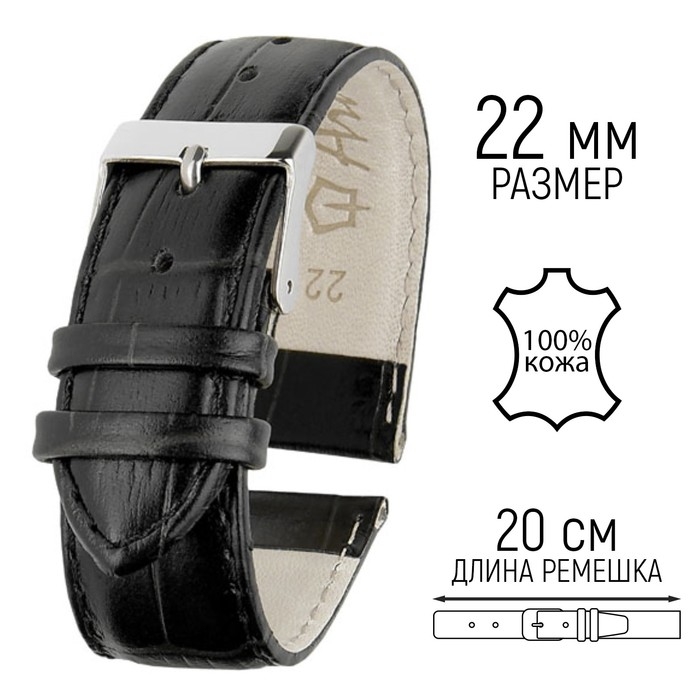 Ремешок для часов, мужской, 22 мм, запряжник 80 мм, горт 120 мм, натуральная кожа