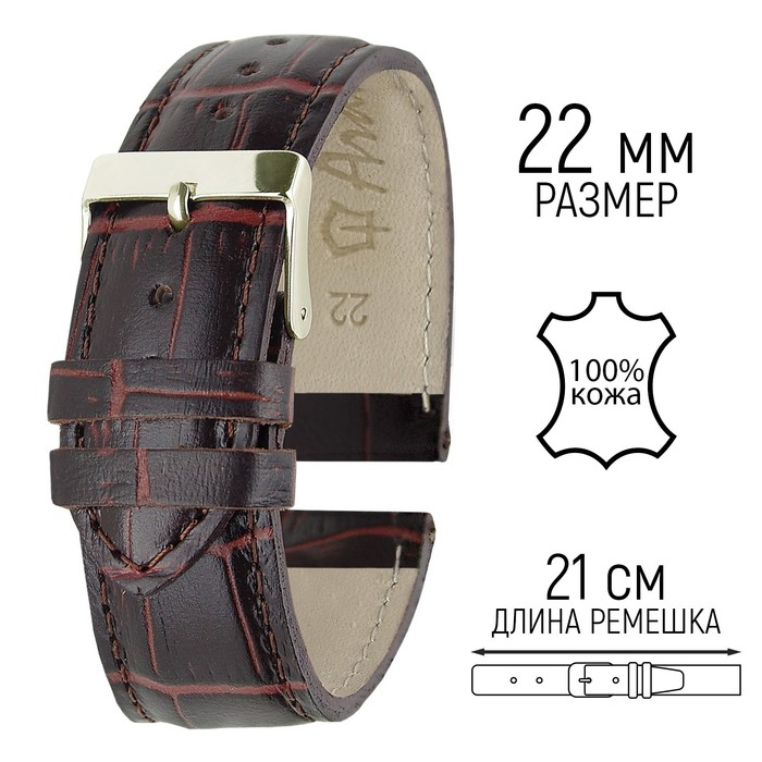 Ремешок для часов, мужской, 22 мм, запряжник 85 мм, горт 125 мм, натуральная кожа