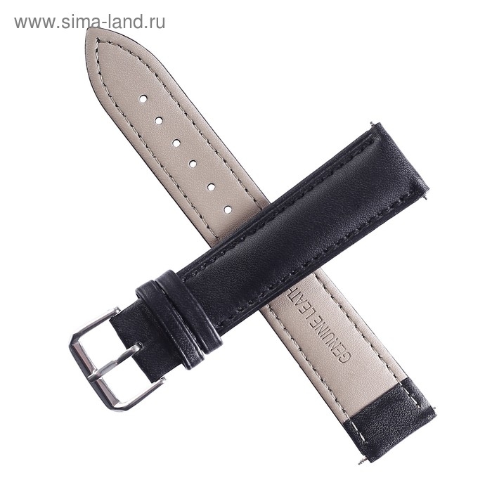 Ремешок для часов "Соломон", 18 мм, натуральная кожа, l-20 см, черный с тиснением