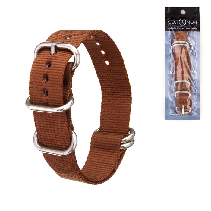 Ремешок для часов "Соломон", 22 мм, текстиль, l-20 см, св. коричневый