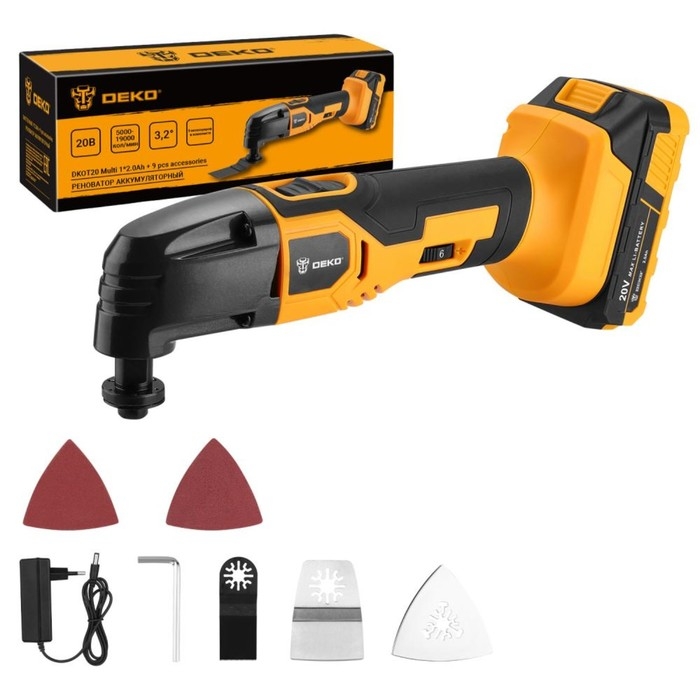 Реноватор аккумуляторный DEKO DKOT20 Multi, 2 Ач, 20 В, 18000 кол/мин, 4 насадки