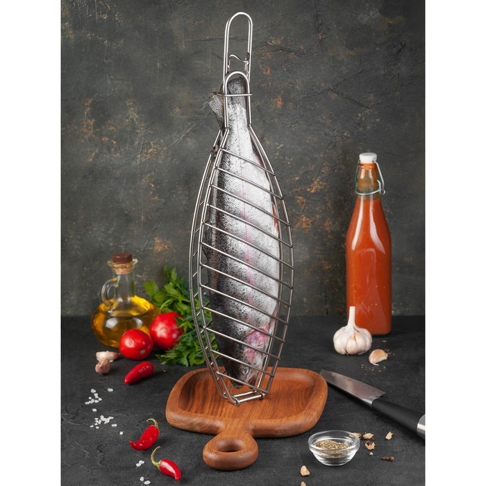 Решетка используется для запекания рыбы целиком или отдельными кусками. Решетка подвешивается за центральное ухо вертикально (можно использовать шампур или кочергу на горловине).Подходит для тандыров средних и больших размеров.