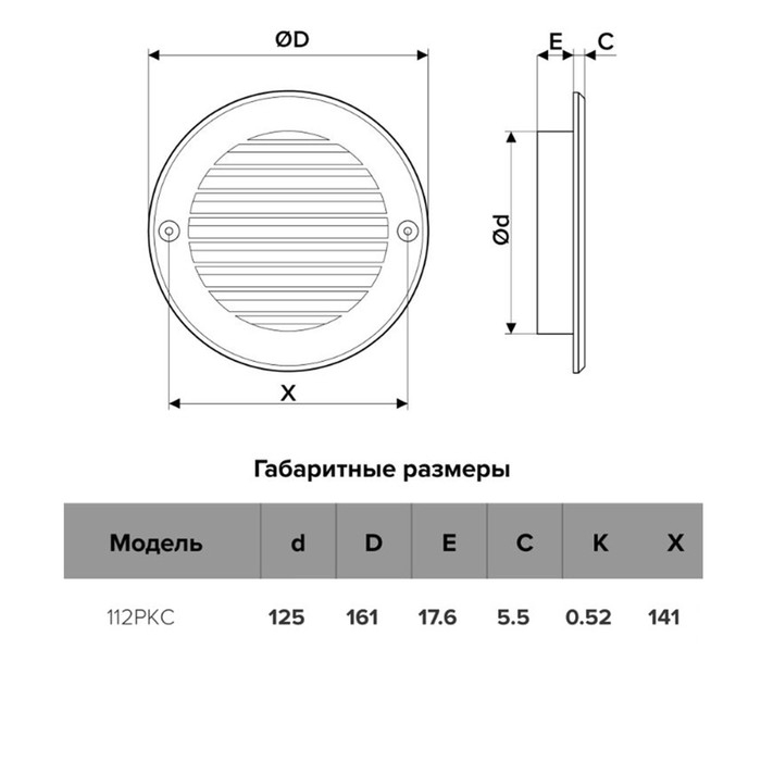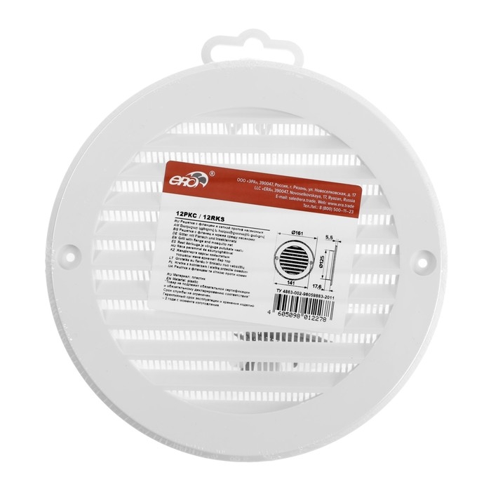Решетка вентиляционная ERA 12 РКС, круглая, с сеткой, d=125 мм