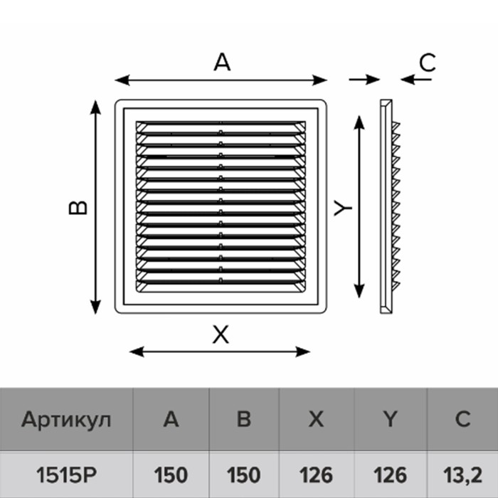 Решетка вентиляционная "КосмоВент" Л150, 150 х 150 мм, с сеткой, неразъемная