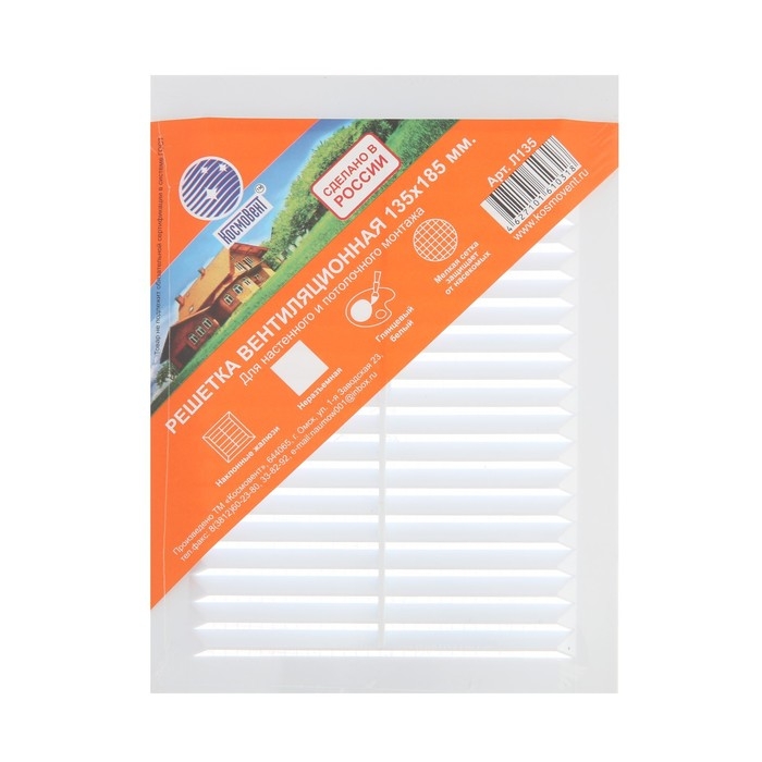 Решетка вентиляционная "КосмоВент" Л135, 135 х 185 мм, с сеткой, неразъемная