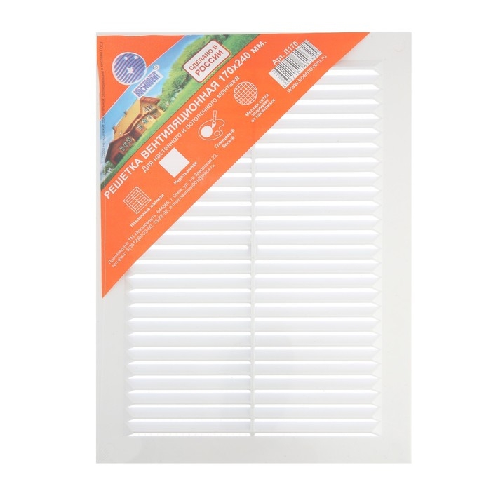 Решетка вентиляционная "КосмоВент" Л170, 170 х 240 мм, с сеткой, неразъемная