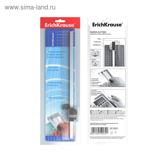 Резак роликовый ErichKrause, до 5 листов, с ковриком для реза 350 мм, блистер