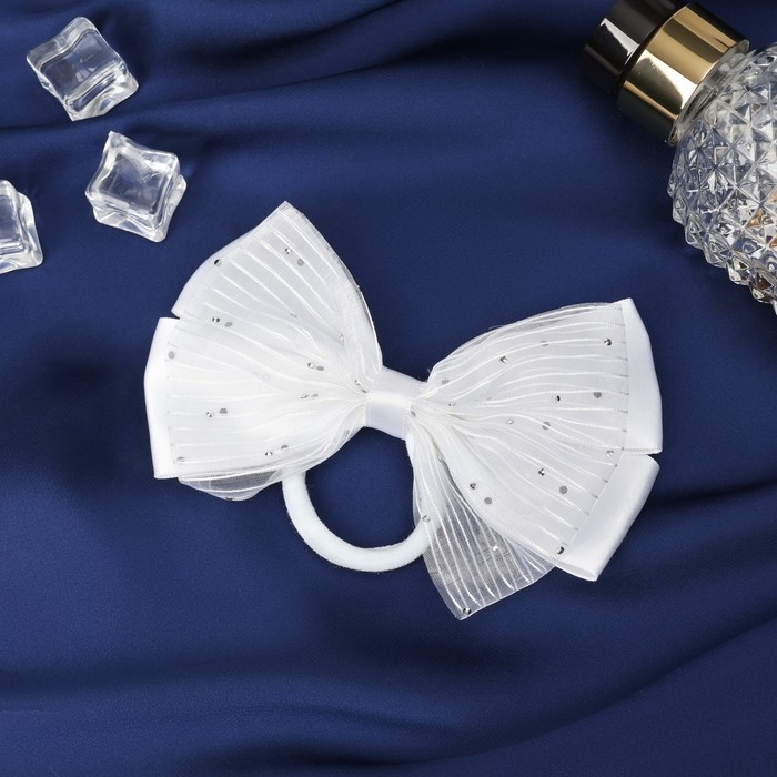Резинка для волос бант "Школьница" стразинка,10х7 см,белый