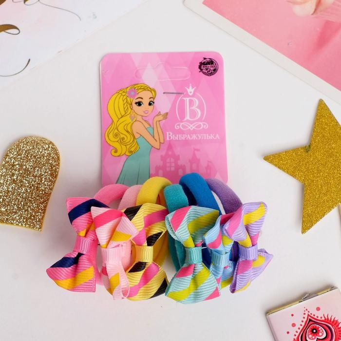 Резинка для волос "Бантик" (набор 6 шт) поп-арт