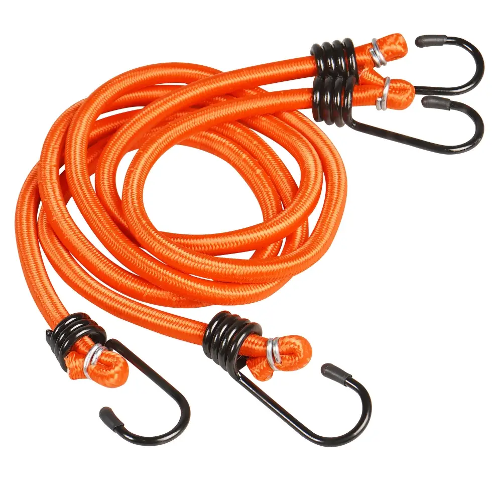 Фиксация этих резинок осуществляется с помощью металлических крючков, которые обладают пластиковыми наконечниками для более надежной фиксации и защиты от повреждений. Это позволяет надежно закрепить груз, предотвращая его смещение или падение во время движения.