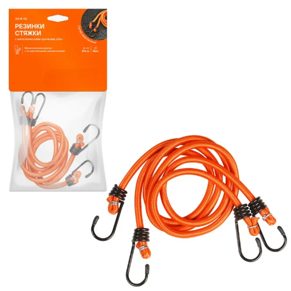Резинки-стяжки набор 2 шт. 80 см, D-8 мм (металл крючки)