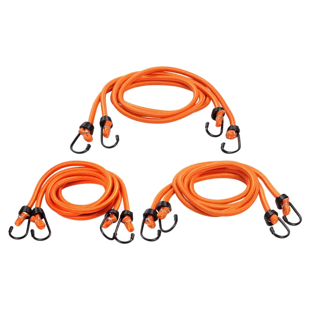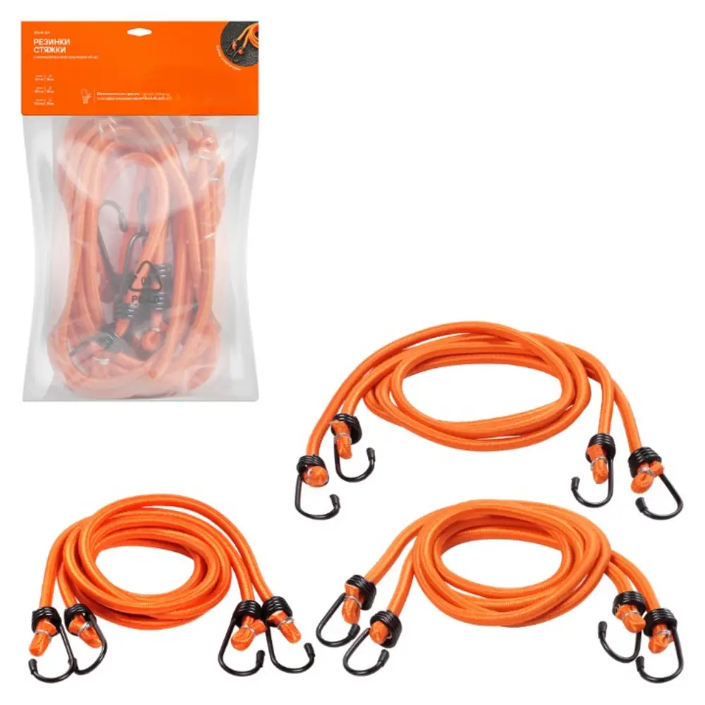В комплекте 6 штук резинок разной длины: 2 штуки по 60 см, 2 штуки по 80 см и 2 штуки по 100 см, с диаметром 8 мм. Этот разнообразный выбор длин позволяет вам создавать конструкции с разными размерами, исходя из ваших потребностей при перевозке груза.