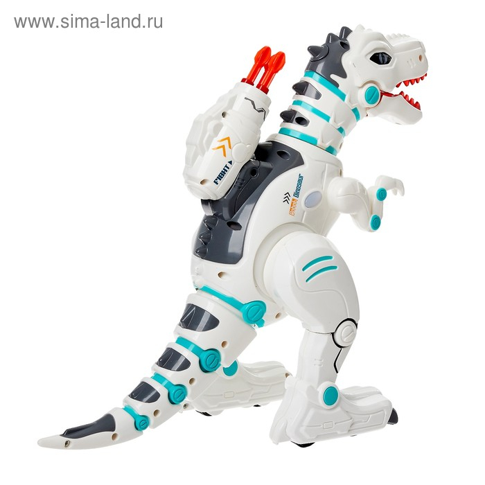 Игрушка умеет выдыхать пар! В комплект входит бутылочка для удобной заправки водой. Стреляет ракетами, для этого на спине расположена пушка. В комплекте есть 9 ракет.