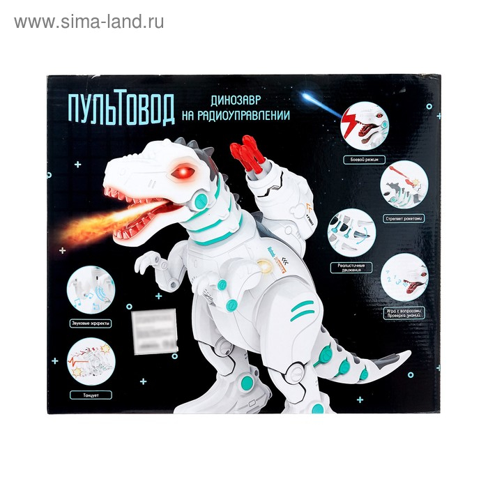 «Киберзавр» передвигается вперёд, назад, влево и вправо, способен воспроизводить музыку и танцевать, а также обучить английскому языку. Играй с роботом, отвечая на его вопросы.