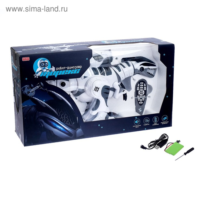 Робот «Тирекс» ― боевой динозавр с большой пушкой! Игрушка свободно передвигается вперёд, назад, влево и вправо, двигает хвостом, головой и передними лапками.