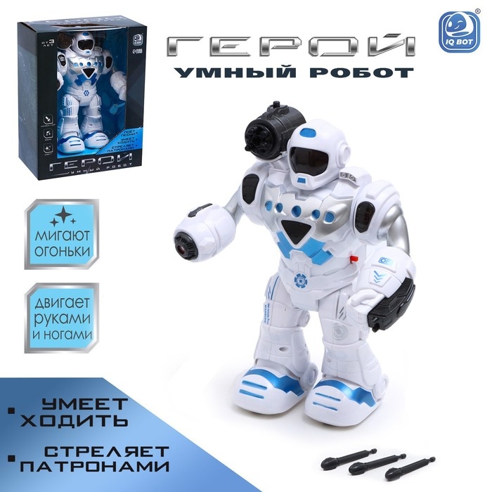 «Герой» — радиоуправляемый робот со встроенным проектором и способностью стрелять. Такая игрушка станет лучшим боевым другом ребёнка.