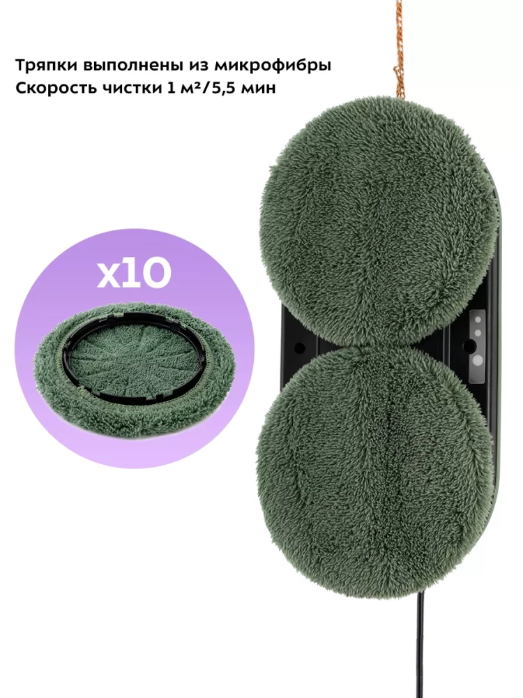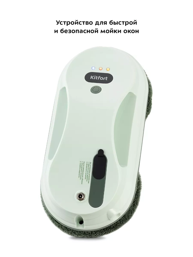 Робот Kitfort КТ-5189 предназначен для мытья стеклянных, кафельных и зеркальных поверхностей. Устройство оснащено вентилятором, который создает разрежение между дном робота и очищаемой поверхностью, благодаря чему робот удерживается на гладкой вертикальной поверхности. К двум держателям тряпок на дне робота крепятся чистящие тряпки. В комплекте 5 пар чистящих тряпок, поэтому вы можете их менять во время уборки. Тряпки оттирают и впитывают грязь. Прибор укомплектован страховочным тросом, поэтому вы можете использовать робот для высоких или широких окон. На случай внезапного отключения электричества робот снабжен резервной системой питания, которая будет удерживать робота на окне около 20 минут.