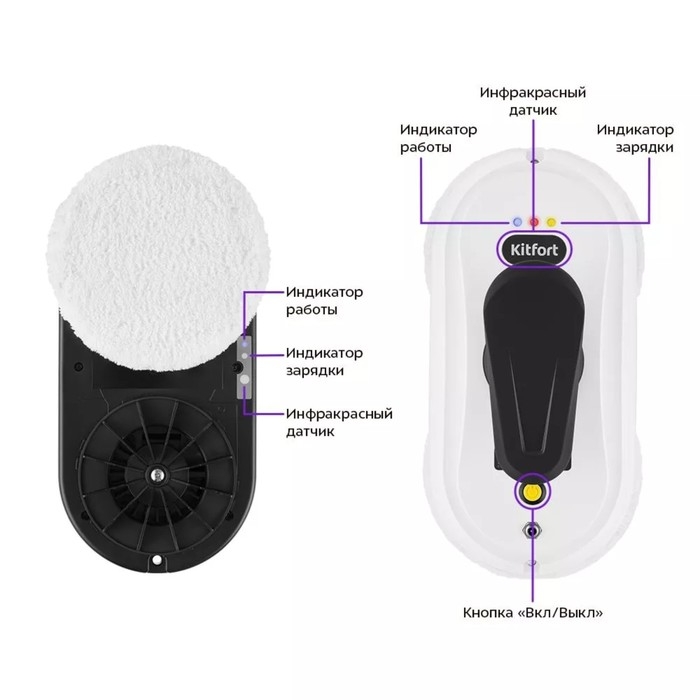 Робот-мойщик окон Kitfort KT-5182, 80 Вт, 5.5 мин/м2, от АКБ, белый