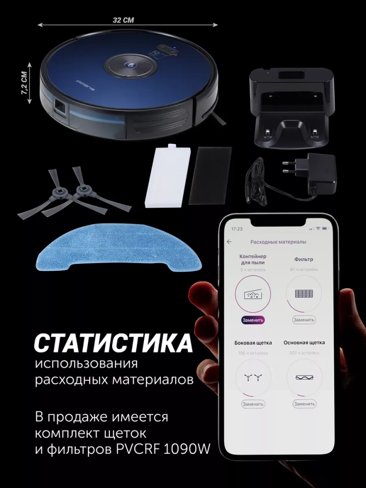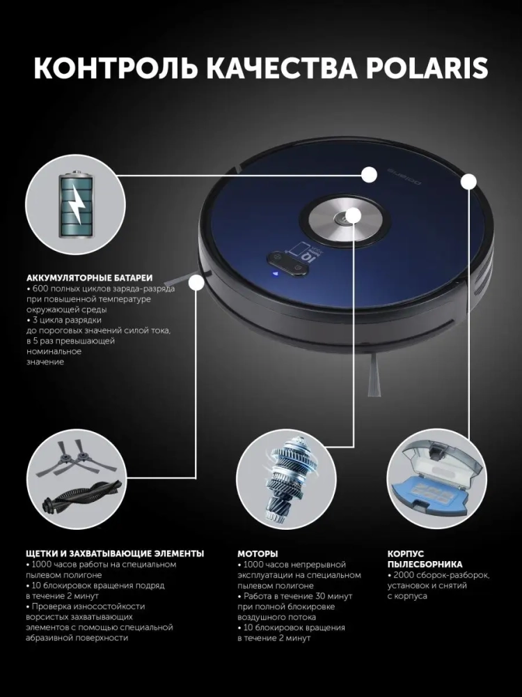 Робот-пылесос Polaris PVCR 3200 IQ Home Aqua с wi-fi управлением предназначен для сухой и влажной уборки. В приложении Polaris IQ Home вы из любой точки мира сможете включать прибор и следить за его состоянием, регулировать мощность всасывания и интенсивность подачи воды, отслеживать износ аксессуаров, установить защиту от детей (от несанкционированного запуска) и запланировать уборку на неделю вперед. Для любителей голосовых помощников настроена работа с Алисой и Марусей. Мотор 40 Вт обеспечивает высокую мощность всасывания для безукоризненной уборки. С помощью вращающихся боковых и центральной щетки пылесос собирает даже самый мелкий мусор, а благодаря системе продуманного построения маршрута GyroInside робот не пропустит ни одного участка в вашем доме. Емкость аккумулятора 3200 мАч обеспечивает до 150 минут уборки без подзарядки. Уровень шума не превышает 63 дБ. Оценить интерфейс и функционал прибора можно в деморежиме в приложении Polaris IQ Home.