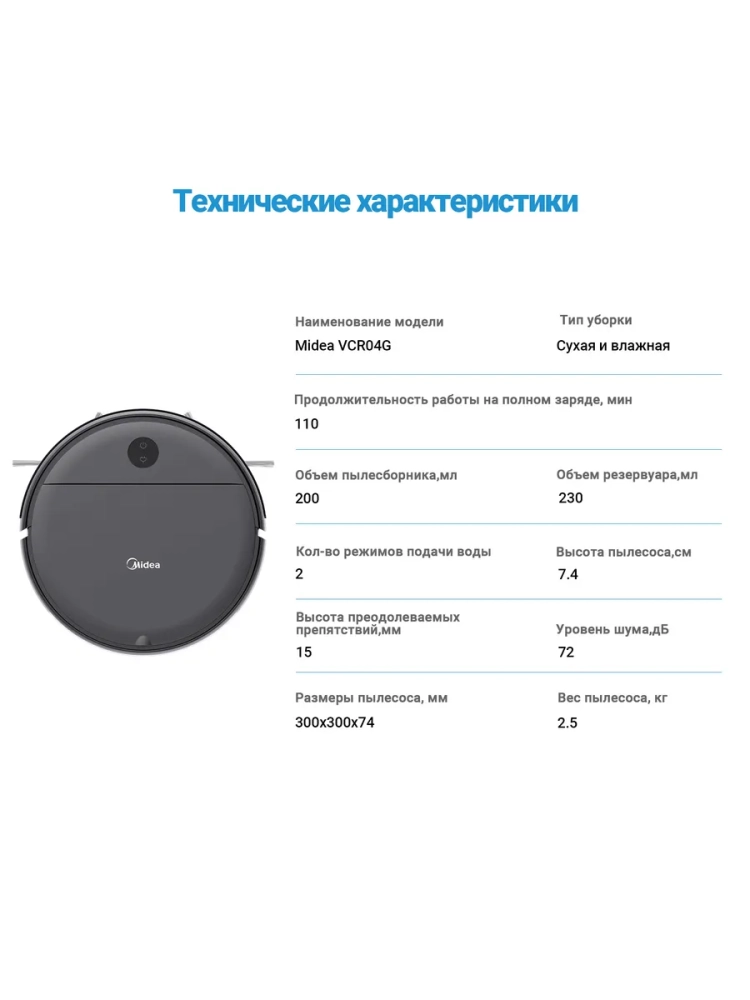 Робот-пылесос Midea VCR04G - это идеальное решение для тех, кто ценит простоту и удобство в уборке.