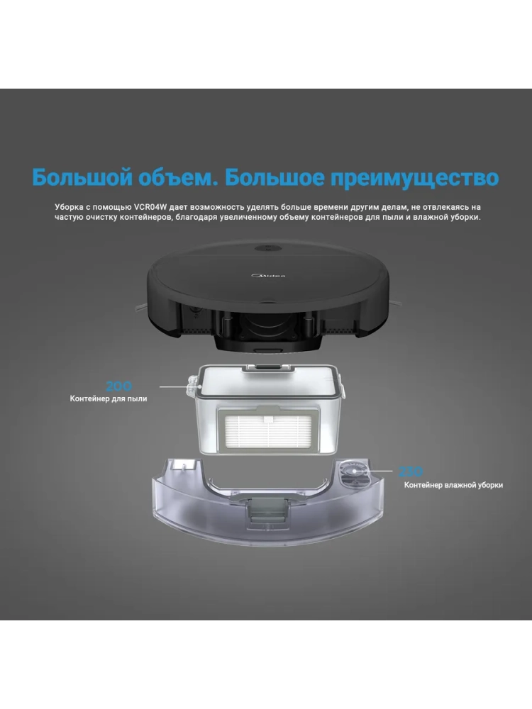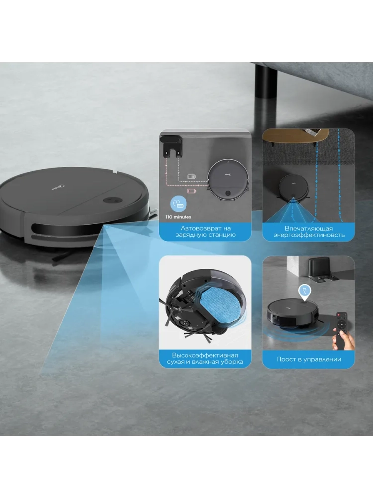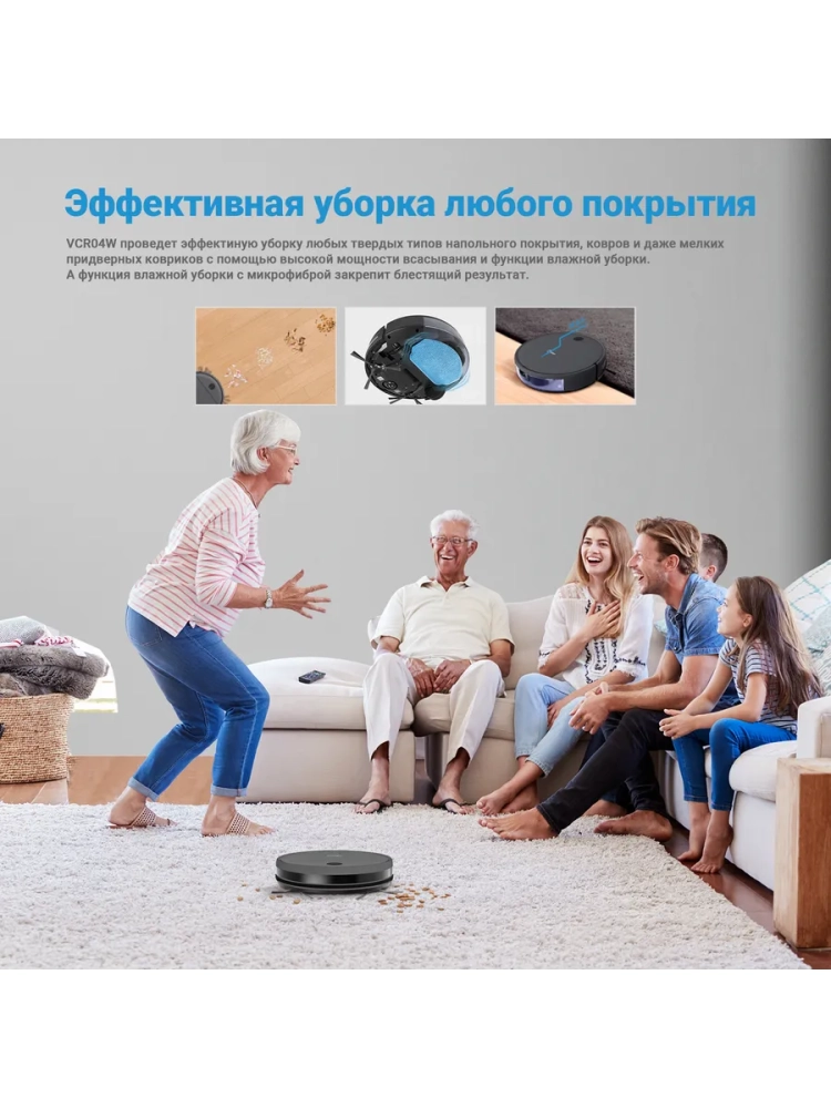 Робот-пылесос VCR04G, сухая и влажная уборка, пульт, серый