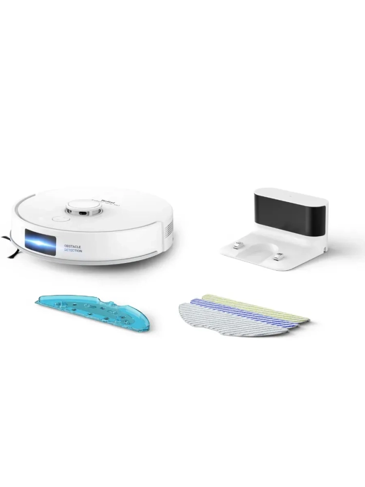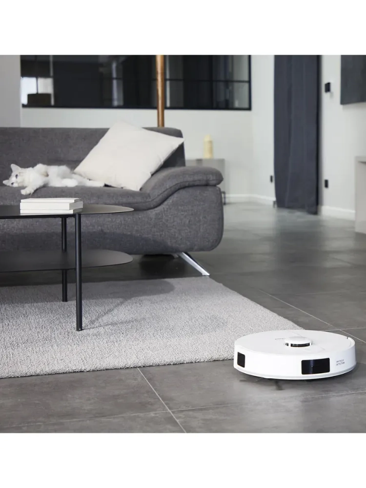 Робот-пылесос автоматически вернется на станцию в конце уборки или если уровень заряда батареи слишком низкий. Робот-пылесос оснащен датчиками защиты от падения для распознавания лестниц. В случае их обнаружения он сменит направление. Робот-пылесос оснащен фильтром, расположенным в пылесборнике.