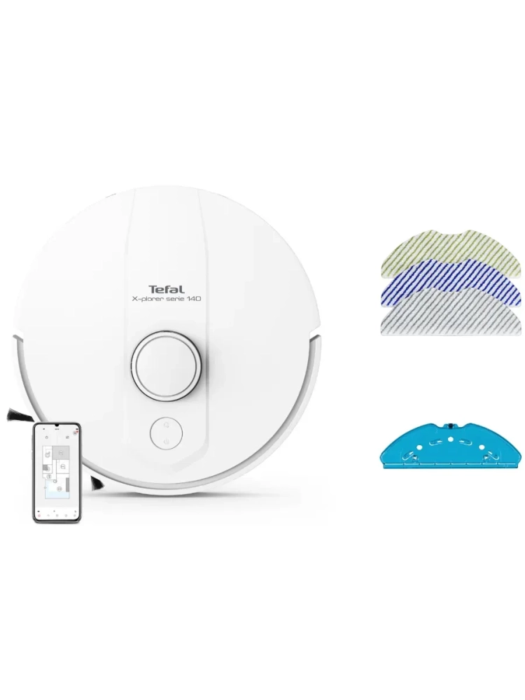 Робот пылесос Tefal X-plorer Serie 140 RG9177WH. Надежный и емкий Li-ion аккумулятор обеспечивает до 120 минут автономной работы без подзарядки. Этого времени хватит, чтобы убрать большую квартиру или дом. Сухая и влажная уборка одновременно. Боковая щетка предназначена для уборки в углах и труднодоступных местах, центральная щетка – для сбора крупного мусора и пыли. Для деликатной чистки напольного или коврового покрытия можно задать запретные зоны для влажной уборки в приложении.