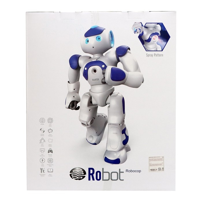 - В наборе: робот, бутылочка для воды, провод для зарядки, пульт дистанционного управления.