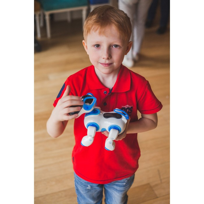 Робот собака «Ки-Ки», программируемый, на пульте управления, интерактивный: звук, свет, танцующий, музыкальный, на батарейках, на русском языке, синий