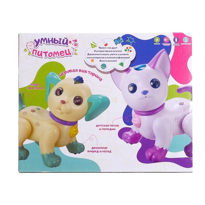 Робот кот «Умный питомец» ZHORYA, программируемый, на пульте управления, интерактивный: звук, свет, танцующий, музыкальный, на батарейках, на русском языке, белый