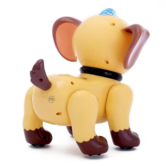 Робот собака «Умный питомец» ZHORYA, на пульте управления, интерактивный: звук, свет, танцующий, музыкальный, на батарейках, на русском языке, бежево-коричневый