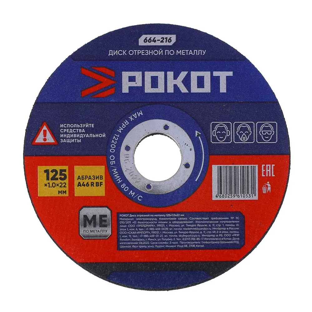 РОКОТ Диск отрезной по металлу 125х1,0х22мм