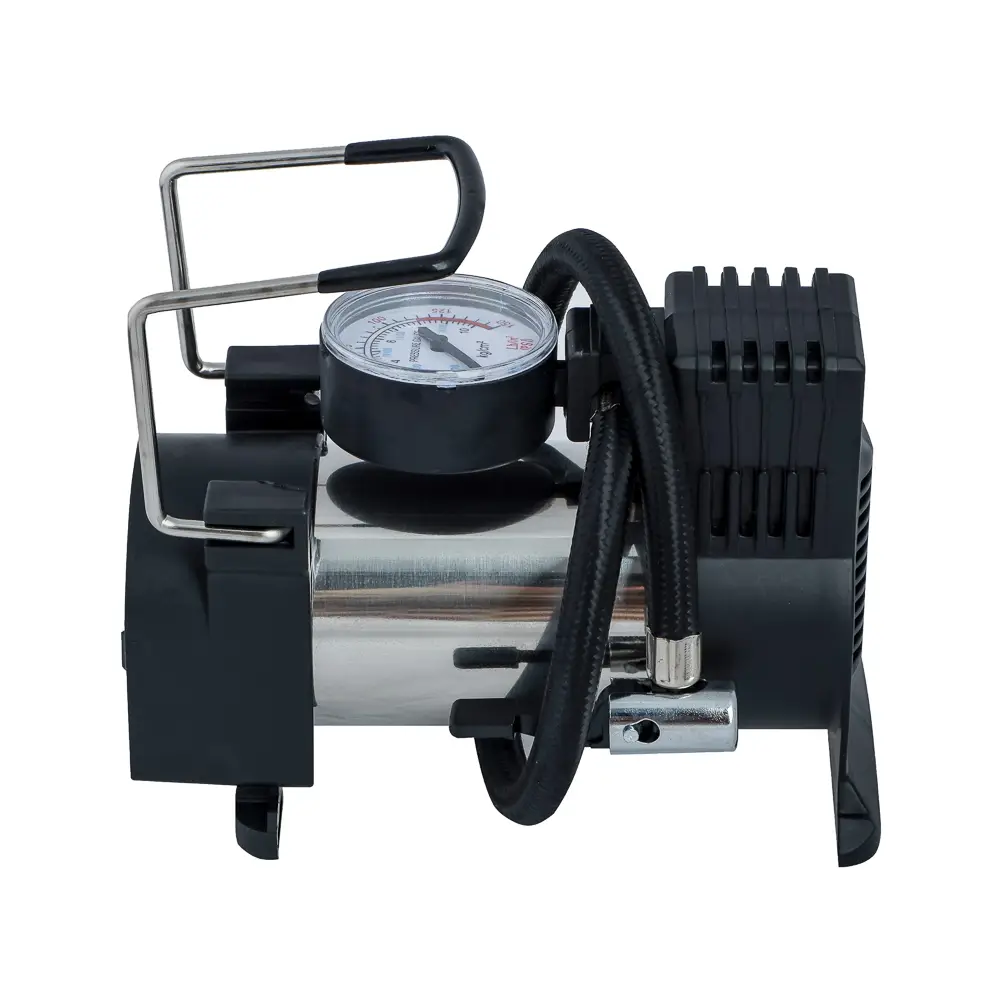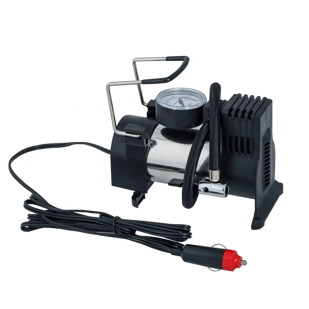 Автомобильный компрессор РОКОТ «Торнадо» с производительностью 35 л/мин и мощностью 90 Вт используется для подкачки шин в транспортных средствах. Работает от системы бортового питания с напряжением 12 В. Рабочее давление – 10 атм. Устройство имеет компактный размер, манометр для отслеживания и регулировки давления внутри камеры, а также обладает защитой от короткого замыкания. Быстро накачивает шины и безотказно работает в широком диапазоне температур – от -25 до +45 градусов Цельсия. Длина воздушного шланга – 2,7 м. Комплект также включает набор из 3-х переходников для разных типов воздушных клапанов.