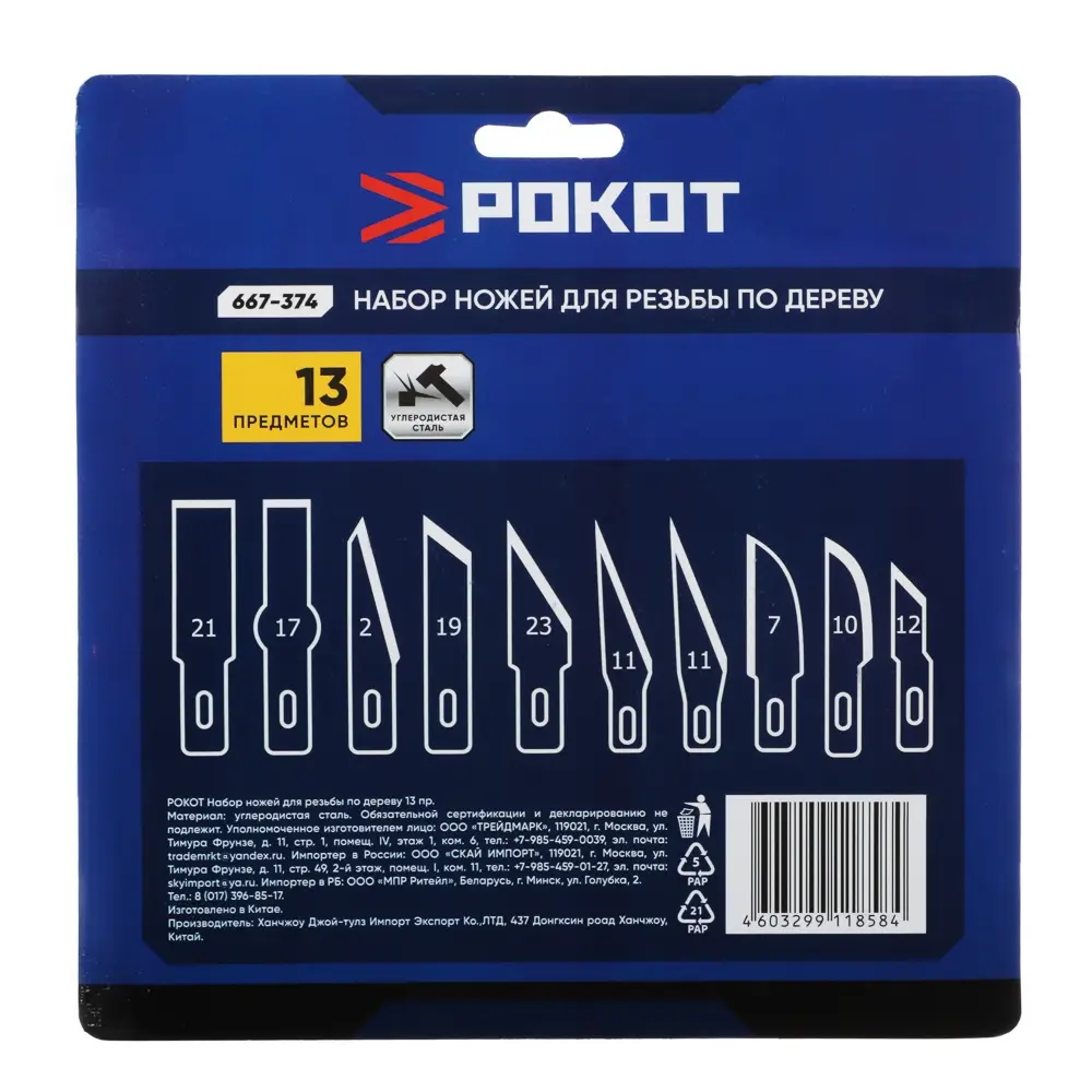 РОКОТ Набор ножей для резьбы по дереву 13пр