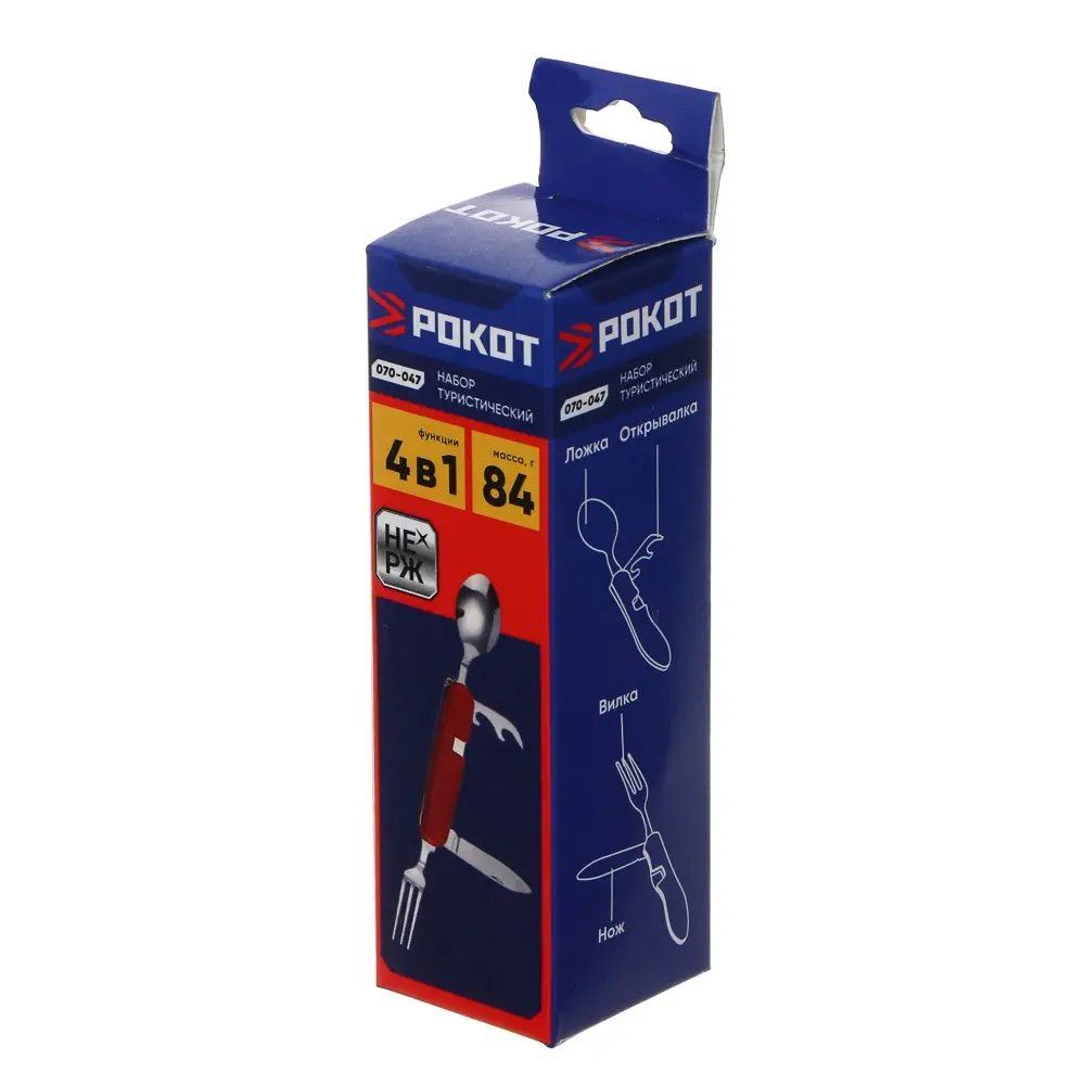 РОКОТ Набор туристический: нож, ложка, вилка, открывалка; нерж. сталь