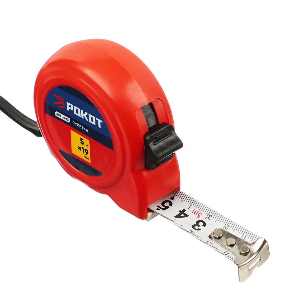 РОКОТ Рулетка "ПЛАСТИК", 5м х 19мм, одинарный зацеп, корпус PP