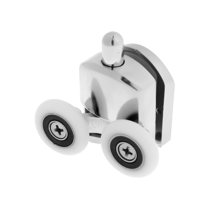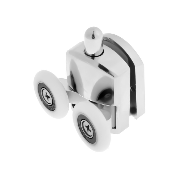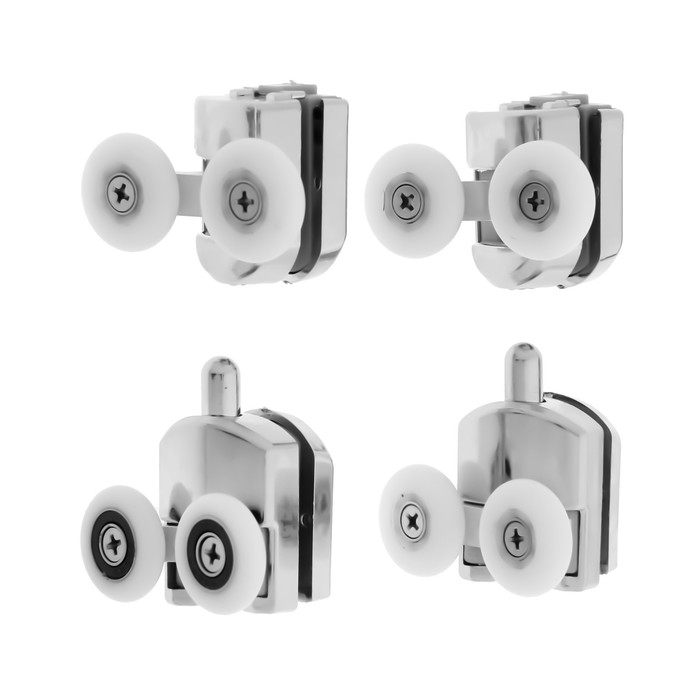 Комплект сменных натяжных роликов для душевой кабины. Корпус выполнен из пластика с хромированным покрытием.