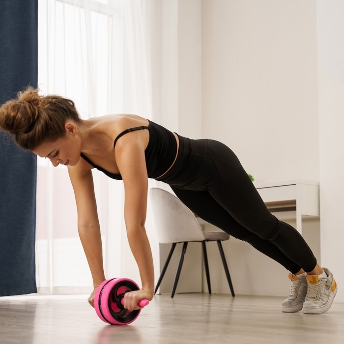 Ролик для пресса — это простой, но достаточно эффективный спортивный снаряд. Во время тренировок с ним прорабатываются все группы мышц, основная нагрузка приходится на пресс.